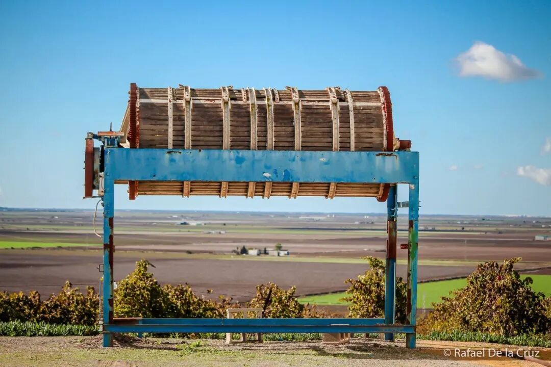 别看Lebrija远离大西洋,但它紧挨着瓜达吉薇河。当湿润的风扫过一马平川的沼泽地,从河面扑向酒庄,站在葡萄园里的我不禁拿出丝巾护住脖子,那是5月中旬,站在太阳下已可短袖。就是这样的奇特风土,滋养活力四射的酒花,造就劲爽清脆的Fino。